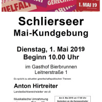 Am Mittwoch, den 01. Mai 2019 um 10: Uhr im Gasthof Bierbrunnen in Schliersee, findet die Maikundgebung statt.