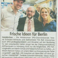 Die Holzkirchner SPD-Ortsvorsitzende Verena Schmidt-Völlmecke und Stellvertreter Tim Roll hatten jüngst bei der Dialogveranstaltung SPDerneuern in Nürnberg nicht nur die Möglichkeit, SPD Führungskräfte um Martin Schulz und Natascha Kohnen zu treffen.